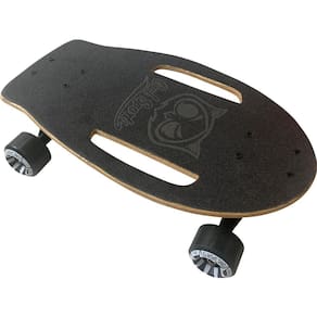 Skate City Cruiser Owl Sports O Skate City Cruiser da OWL Sports é o modelo mais diferente de nosso catálogo, foi projetado pensando na praticidade de carregá-lo por aí sem ter problemas. Possui um shape com 7 folhas, riser pads de 1.5mm, trucks invertidos de 175mm profissionais e rodas de 60mm em PU. A lixa e o shape são marcados a laser com o logotipo da marca.