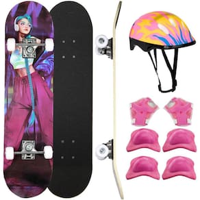 7. Kit de Proteção Infantil: Além do Skate, este pacote inclui um kit de proteção completo, projetado especialmente para skatistas de até 13 anos. Ele inclui capacete, joelheiras, cotoveleiras e luvas, garantindo a segurança da sua pequena skatista.