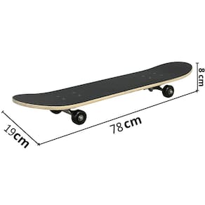 Medidas do skate: 8 x 19 x 78 cm (altura x largura x comprimento)
