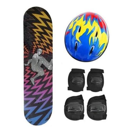Skate Infantil Com Kit De Proteção e Bolsa estampas variadas Estampa: Skatista Skate Infantil com lixa e Kit de proteção é uma ótimo para trazer mais diversão para as criança e proteção na prática das manobras, assim arrasando na pista de skate. - ITENS INCLUSOS: 1 Skate 1 Capacete 1 par de Joelheira 1 par de Cotoveleira - ESPECIFICAÇÕES: Material: Madeira, lixa adesiva e vinilKit de proteção plástico e tecido Crianças a partir de 6 anos.Peso máximo suportado 50 Kg - MEDIDAS : Skate: 79,0 x 20,0 x 9 cmCapacete 22 x 18,5 cmJoelheira 15,5 x 12 cmCotoveleira 13,5 x 10 cm Escolher a estampa que deseja antes de finalizar a compra