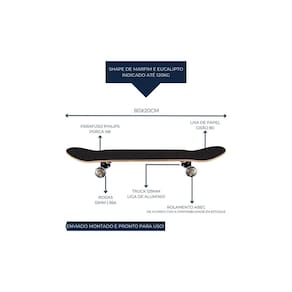 Todas as peças do nosso produto foram selecionadas para que você tenha a melhor experiência possível com a prática do esporte, fazem parte desta listagem o Shape, Lixa, Trucks, Rodas, Rolamentos, Parafusos, Porcas, Amortecedores, tudo completo basta sair andando e praticando.