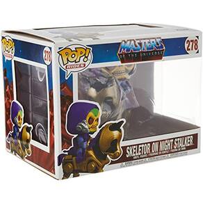PRODUTO INTERNACIONAL. O vilão mais icônico dos Masters of the Universe agora está disponível como um Pop estilizado: Skeletor com Night Stalker! Este colecionável impressionante tem 18 cm de altura e será o destaque da sua coleção. Os fãs da série vão amar a atenção aos detalhes, com a incrível armadura inspirada em ossos e o notável cavalo espectral Night Stalker