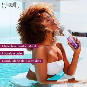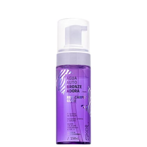 A Água Autobronzeadora Red Carpet Glow, da Skelt, forma uma espuma que se espalha facilmente para um efeito uniforme. Pode ser usada de dia ou à noite, quando você for dormir, já que não mancha a roupa.