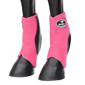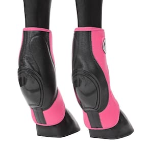 Par de Skid Boots Boots Horse modelo médio, fabricados em neoprene com revestimento em nylon. Os protetores moldados na parte externa são fabricados em plástico com acabamento emborrachado, protegem os boletos por serem resistentes. Possui um sistema de fechamento em tira autocolante triplo muito moderno dando maior facilidade na hora de colocar ou retirar a proteção de seu animal. Possui reforço em material sintético na parte posterior. Utilizados nas patas traseiras do animal.
