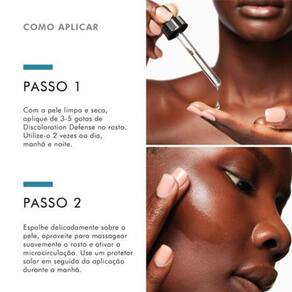 Discoloration Defense é um sérum multicorretivo antimarcas diário clinicamente comprovado, que reduz a aparência dos tipos mais comuns de marcas em todos os tons de pele, incluindo os mais difíceis de tratar, como diferenças de tonalidade persistentes e marcas de acne. Com 3% de ácido tranexâmico, 1% de ácido kójico, 5% de niacinamida e 5% de HEPES, essa fórmula de última geração melhora a aparência da pele, deixando-a iluminada e com o tom uniformizado em duas semanas. Com uma mistura sinérgica de ingredientes antimarcas que reduzem as diferenças de tonalidade da pele, deixando-a iluminada e minimizando a reincidência desse tipo de problema (com uso contínuo) 60% de melhoria na uniformização do tom de pele 34% de redução de marcas de acne em tons de pele mais escuros Sem parabenos, glúten, fragrância, silicone e hidroquinona
