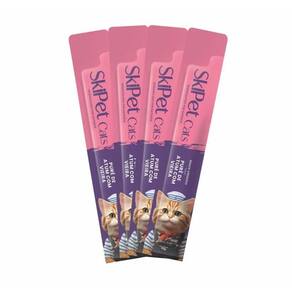 Skipet Cats Snack Cremoso Sabor Purê De Atum Com Vieira 4 Sachês De 15G - Bioctal O SkiPet é uma recompensa durante os momentos de interação que transforma a hora do petisco em uma demonstração de amor e cuidado. Uma oportunidade para fortalecer laços e criar momentos inesquecíveis ao lado do seu pet É super cremoso e muito saboroso. Sem conservantes artificiais, sem glúten, livre de grãos e transgênicos. Enriquecido com Zinco e Taurina. Benefícios: - sabor refinado de atum com vieira - Textura cremosa que facilita a aceitação - Rico em proteínas e nutrientes essenciais - Ideal como agrado ou complemento alimentar Indicação: Petisco para gatos a partir de 1 mês de idade. Composição básica: Carne de atum 20% , Carne de vieira 1,5% , Extrato de Leveduras Saccharomyces cerevisiae , Óleo de frango, Fécula de mandioca modificada, Taurina, Zinco Aminoácido quelato, Carragena, Goma xantana. Níveis de : Umidade máx ........................................................................... 946,5 g/kg Proteína bruta mín ..................................................................... 35,2 g/kg Extrato etéreo mín ........................................................ 1.900,0 mg/kg Matéria fibrosa máx .................................................................... 17,5 g/kg Matéria mineral máx ................................................................. 15,4 g/kg Cálcio mín ........................................................................................ 0,0 mg/kg Cálcio máx ............................................................................. 6.170,0 mg/kg Fósforo mín .................................................................................... 0,0 mg/kg Fósforo máx ........................................................................ 3.500,0 mg/kg Taurina mín ............................................................................. 500,0 mg/kg Extrato de leveduras saccharomyces cerevisiae mín .................. 2.500,0 mg/kg Enriquecimento: Zinco mín ...................................................................................... 20,0 mg/kg