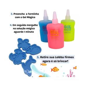 Slime Leléba Gel Mágico Fundo Do Mar Gelelé - Doce Brinquedos 1 Kit roxo + 1 kit azul totalizando 22 peças Mergulhe em um mundo encantado de aventura cheia de magia. este brinquedo fascinante oferece uma experiência sensorial única, com um gel mágico inspirado nas maravilhas do oceano. Dentro do pote, você encontrará um gel com texturas e cores que lembram as profundezas do mar, proporcionando uma sensação tátil divertida e relaxante. O gel vem com tonalidade vibrantes e é repleto de pequenos detalhes que imitam criaturas marinhas, como peixinhos, estrelas do mar e conchinhas, oferecendo uma imersão completa no ambiente . Ideal para crianças e adultos que buscam um passatempo criativo ou uma maneira de aliviar o , o Brinquedo Gelele Leleba é fácil de manipular e limpar, garantindo que a diversão seja duradoura e sem bagunça. Deixe sua imaginação flutuar e explore o fundo do mar com este gel mágico encantador. Recomendado para maiores de 3 anos Contém: 03 frascos de gel mágico coloridos, 02 sachês de pó mágico, 04 forminhas de animais marinhos, 1 bandeja e 1 espátula. ATENÇÃO: Não deve ser ingerido. Lave as mãos antes e após o uso. Brinque em superfícies limpas e impermeáveis. Composição: água, fragrância, pigmentos, espessastes, conservantes, aditivos e polímero PP. Homologação Inmetro: CE-BRI/IQB 006107 54705/21-001 Marca: Não Informado