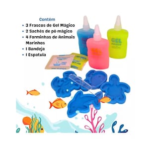 Kit Slime Leléba Gel Mágico Fundo Do Mar Azul Com 11 Peças Gelelé - Doce Brinquedos Mergulhe em um mundo encantado de aventura cheia de magia. Este brinquedo fascinante oferece uma experiência sensorial única, com um gel mágico inspirado nas maravilhas do oceano. Dentro do pote, você encontrará um gel com texturas e cores que lembram as profundezas do mar, proporcionando uma sensação tátil divertida e relaxante. O gel vem com tonalidade vibrantes e é repleto de pequenos detalhes que imitam criaturas marinhas, como peixinhos, estrelas do mar e conchinhas, oferecendo uma imersão completa no ambiente . Ideal para crianças e adultos que buscam um passatempo criativo ou uma maneira de aliviar o , o Brinquedo Gelele Leleba é fácil de manipular e limpar, garantindo que a diversão seja duradoura e sem bagunça. Deixe sua imaginação flutuar e explore o fundo do mar com este gel mágico encantador. Recomendado para maiores de 3 anos Contém: 03 frascos de gel mágico coloridos, 02 sachês de pó mágico, 04 forminhas de animais marinhos, 1 bandeja e 1 espátula. ATENÇÃO: Não deve ser ingerido. Lave as mãos antes e após o uso. Brinque em superfícies limpas e impermeáveis. Composição: água, fragrância, pigmentos, espessastes, conservantes, aditivos e polímero PP. Homologação Inmetro: CE-BRI/IQB 006107 54705/21-001 Marca: Não Informado Ean: 7898723630979