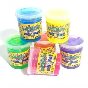 Os slimes vêm em tons alegres como verde, amarelo, azul, rosa, roxo e vermelho, que estimulam a imaginação e fazem qualquer atividade mais criativa. A textura elástica e maleável é perfeita para amassar, esticar e modelar, oferecendo uma brincadeira sensorial que prende a atenção dos pequenos. Para a tranquilidade dos pais, os slimes são laváveis e não mancham as roupas, permitindo que a diversão aconteça sem preocupações.