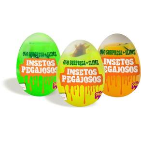 Brinquedos em embalagens no formato ovo são sempre um sucesso. Ovo Insetos Pegajosos é uma combinação de itens que fazem a diversão da criançada Bichos em borracha envolvidos em slime, proporcionando sensação tátil e visual arrepiantes