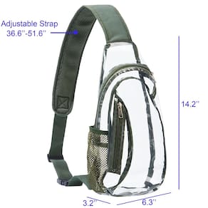 Bolsa transparente feita de material resistente de PVC transparente à prova d'água com zíperes de alta qualidade e clipe de alça durável. Com alças de ombro ajustáveis para dispersar o peso, faz você esquecer que está usando esta bolsa. - Bolsa tiracolo transparente de PVC mais espessa: bolsa tiracolo transparente feita de plástico PVC extra durável resistente ao frio e à prova d'água e encadernada com costura de alta qualidade. Esta mochila tiracolo resistente possui tecido projetado especificamente para uso diário - Bolsa tiracolo transparente aprovada pelo estádio: pequena (16 cm x 8 cm x 14,2 pol.), resistente, leve mas com grande capacidade. Pode colocar celular, carteira, cosméticos. Há um bolso frontal que é ótimo para pequenos itens como chaves, dinheiro, cartões, bilhetes e etc. A bolsa de peito é muito conveniente para caminhadas, viagens - Alça ajustável e respirável: a alça de malha respirável oferece uma experiência fresca e confortável para o seu ombro, você pode ajustar o comprimento de acordo com suas necessidades, a alça e a bolsa de peito podem ser totalmente estendidas até 130 cm, se ajustam perfeitamente ao seu corpo - Economize tempo e conveniência: mochila de peito transparente com total transparência em toda a volta. Passe pela segurança com a bolsa tiracolo transparente para evitar ser rejeitada no aeroporto ou no portão do estádio - Usos pretendidos: esta bolsa de ombro transparente pode ser usada para uma ampla variedade de finalidades diferentes, trabalho, academia, praia, aeroportos, shows e para qualquer ponto de controle de segurança para acelerar seu horário de entrada e chegar onde você está indo sem problemas. Você pode aproveitar totalmente os jogos ou shows, levante suas mãos!