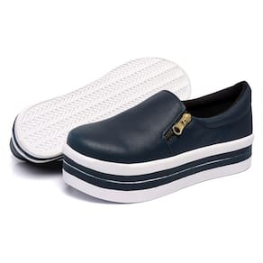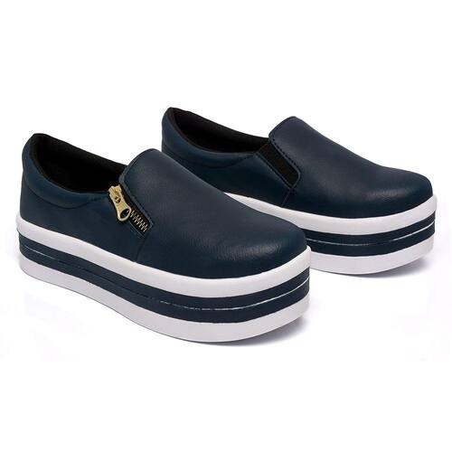 Slip On Liso Sola Alta Lk Store Com Calce Fácil e Zíper Lateral - 34 - Azul Marinho