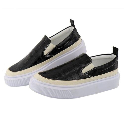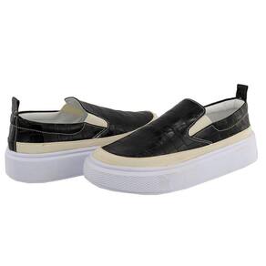 Slip On Tenis Feminino Calce Facil Acabamento Animal Print Croco Palmilha Anatomica Puxador Traseiro - 37 - Preto