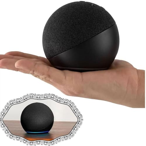 Assistente Virtual Alexa integrada Controle por voz e movimento Função de alarme Design compacto e elegante Áudio de alta qualidade Compatível com diversos dispositivos inteligentes