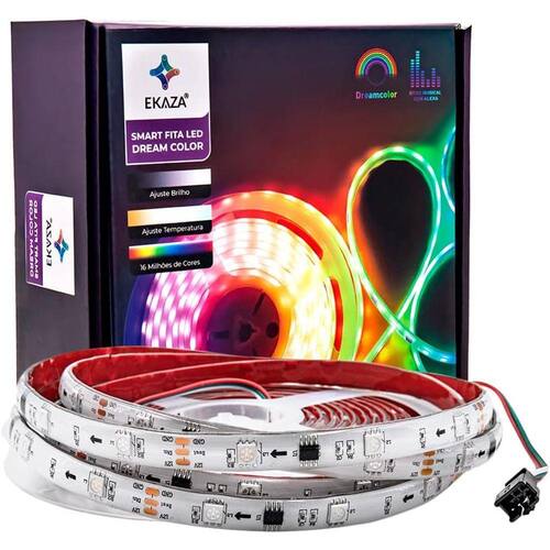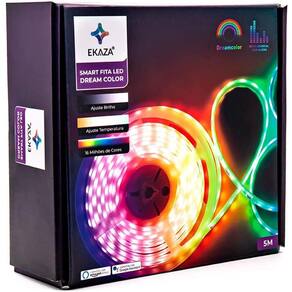 Já imaginou personalizar o seu quarto gamer ou ambientar a sala para assistir a um jogo de futebol, o seu filme ou a sua série favorita? Você pode! Com a Fita Led inteligente Wi-fi RGB da EKSG-T1903 EKAZA, você conta com 16 milhões de cores para decorar a casa do seu jeito, e ainda pode controlar a intensidade, criar cenas e automações ou aciona-la por comando de voz através da Alexa ou Google Assistente. Características: - Produto homologado pela Anatel – CB3S 08206-21-11765; - Fita led compatível com rede Wi-fi 2.4Ghz (Observação: Não funciona com rede 5Ghz); - Acompanha manual de instalação; - Aplicativo EKAZA para controlar a sua Fita Led disponível para download para Android e iOS; Funções: - Ligar, Desligar, Escurecer, Aumentar a Luz; - Trocar a temperatura da luz especifica; - Ligar e Desligar em horário programado; - Controlar várias fitas led através do mesmo aplicativo ou permitir que uma fita led seja controlado por vários integrantes da família Descrição técnica do produto: Modelo: EKNX-T1903, Comprimento: 5 Metros, Tipo: Fita de LED RGB WIFI Dream Color, segue padrão de luz e ritmo, Led: SMD 5050, Nível de impermeabilização: IP67, Voltagem: DC 12V, Potência: 24W Stanby: <0,4w, <0,5s, Vida Útil: 25,000 horas, Temperatura: -5ºC ~ 50ºC, Conexão: Wi-Fi 2,4Ghz, Bluetooth, Aplicativo: EKAZA, Medidas: 52 x 200 x 220mm PESO, 450g EAN: 790822840112 Anatel: CB3S – 08206-21-11765 Tamanho: 3-5 M Tamanho Caixa: 7X17,8X17,8 (CM)