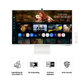 Smart Monitor Samsung M8 32 polegadas, 4K, plataforma Tizen, Tap View, USB-C (65W), USB Hub, HDMI, Bluetooth, AI Upscaling, Active Voice Amplifier Pro, Workspace, Gaming Hub, design ergonômico e Knox Security.Vendido e entregue por Loja Samsung Oficial
