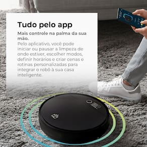 Robô aspirador 3 em 1 (varre, aspira e passa pano seco), controle via aplicativo e assistentes de voz (Alexa, Google Assistente), 4 modos de limpeza, retorno automático à base.Tipo de coletor