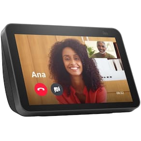 Smart Speaker Amazon com Alexa Echo Show 8 com Tela 8 2º Geração Preto - B084TNNRND Veja e faça ainda mais com a Alexa: tela sensível ao toque HD de 8, com cor adaptável e alto-falantes que trazem o entretenimento à vida. Faça chamadas de vídeo para amigos e familiares com a câmera de 13 MP que utiliza enquadramento automático para manter você no centro da tela. Mantenha-se sempre ao alcance da câmera: faça chamadas de vídeo para amigos e familiares com a nova câmera com enquadramento automático para melhor centralização e posicionamento. Basta pedir à Alexa para fazer uma chamada para seus contatos da Alexa. Deixe sua vida em casa mais fácil: visualize facilmente seus calendários e lembretes. Use sua voz para definir timers, atualizar listas, ouvir notícias, ou checar o trânsito. Controle sua casa inteligente: monitore sua casa quando estiver fora através da câmera embutida. Use a tela interativa, sua voz ou seu movimento para controlar dispositivos compatíveis, como câmeras, lâmpadas e outros. ESPECIFICAÇÕES: Tamanho: 200 mm x 135 mm x 99 mm Peso: 1037 gramas. Tamanho e peso reais podem variar de acordo com o processo de fabricação. Tela: 8, tela sensível ao toque. Câmera: 13 MP com tampa integrada. Conectividade wifi: Wifi de banda dupla compatível com redes wifi 802.11 a/b/g/n/ac. Incompatível com a conexão a redes wifi ad-hoc ou ponto a ponto . Conectividade Bluetooth: Oferece suporte ao Perfil de distribuição de áudio avançada A2DP para streaming de áudio do seu dispositivo móvel para o Echo Show 8 ou do Echo Show 8 para o seu alto-falante Bluetooth. Os alto-falantes Bluetooth que exigem códigos PIN não são compatíveis. Áudio: Alto-falante de neodímio de 2 polegadas com radiador de graves passivo. Requerimentos do sistema: O Echo Show 8 vem pronto para se conectar à rede wifi. O aplicativo Alexa é compatível com dispositivos Fire OS, Android e iOS, e também é acessível pelo navegador da web. Tecnologia de Configuração: A configuração rápida de wifi da Amazon permite que os clientes conectem dispositivos inteligentes à rede wifi em poucas etapas fáceis. A configuração rápida de wifi é outra maneira pela qual a Alexa se torna cada vez mais inteligente. Saiba mais sobre a configuração rápida de wifi. Processador: MediaTek MT 8183 Inclusos na caixa: Echo Show 8, adaptador de energia bivolt na cor branca 30 W , cabo 1,5 m e Guia de início rápido. Geração: Echo Show 8, 2 geração versão 2021 . Recursos de Privacidade: Tecnologia de palavra de ativação, indicadores de streaming, botão de desligamento do microfone/câmera, tampa de câmera integrada, capacidade de visualizar e excluir suas gravações de voz, e muito mais. Idioma: A Alexa fala português.Anatel:07264-19-01698 Imagens de caráter ilustrativo Informações divulgadas de acordo com o manual do fabricante Em caso de duvidas sobre informações técnicas, utilização, limitações e manuseio do produto, verifique o manual do fabricante. EAN:840080577548 NAC009953