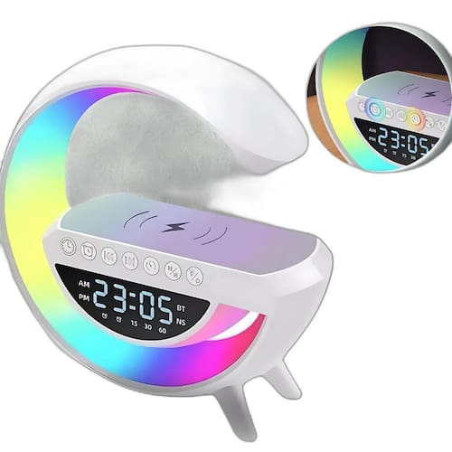 Características: Sistema line-array: potência e cobertura ampla e uniforme. Altamente direcional: frequências altas perfeitas para espaços fechados. Hifi sound quality: som limpo e sem alterações de graves. Carregamento por indução: compatível com android e ios. Multifuncional: luz suave, som de alta qualidade e carregamento sem fio. Ambiente personalizado: 7 modos de iluminação. Rádio fm: mais opções de entretenimento.