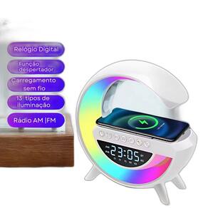 Multifuncional: luz suave, som de alta qualidade e carregamento sem fio.