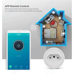 Pode ser controlado remotamente através do aplicativo e por voz Possui temporizador e agenda Realiza o monitoramento do consumo de energia do equipamento conectado potência, corrente e voltagem