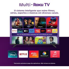 Smart TV com sistema operacional Roku TV, tela Full HD de 43 polegadas, Dolby Audio, App Roku para smartphones, controle com botões de acesso rápido aos principais aplicativos de streaming. Wi-Fi integrado.A Smart TV Multi TL056M de 43 polegadas é ideal para entretenimento domésticoresolução Full HD (1080p)sistema operacional Roku TVacesso rápido e fácilaplicativos de streaming (Netflix, YouTube, Disney+)canais de TV aberta