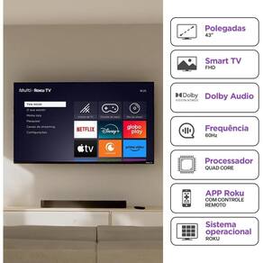 Experimente um entretenimento inteligente com a praticidade do Roku TV e a qualidade da TV Multi 43" Full HD.