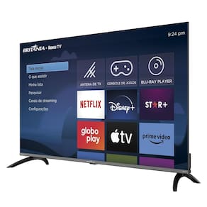 - Smart TV 50” Britânia UHD B50CRA - Tamanho da tela: 50” - Resolução: UHD (3840 x 2160) - Tecnologia do painel: DLED - Taxa de atualização: 60 Hz - HDR10 - Sistema operacional: Roku TV - Áudio: Estéreo Dolby Audio - Potência sonora: 24W RMS (2 x 12W) - Wi-Fi: Dual Band (2.4 GHz e 5 GHz) - Entradas HDMI: 4 - Entradas USB: 2 - Cor: Space GrayVendido e entregue por Casas Bahia