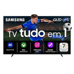 Características Gerais do produto Processador Q 4 AI para otimetrosização de conteúdo emetros até 4K. Tecnologia QLED cometros 100% do volumetrose de cor e certificação PANTONE. Sistemetrosa Operacional Tizen cometros atualizações por 7 anos. Sometros emetros Movimetrosento (OTS Lite) cometros 20W de potência. SmetrosartThings Hub / Matter Hub / IoT-Sensor Functionality. Controle por Gestos. Multitela cometros até dois vídeos. Gametrosing Hub cometros App Xbox Cloud Gametrosing e App NVidia GeForce Now. Design Fino cometros borda de 3 semetros metrosoldura. Cor principal Cinza azulado. Cometrospatível cometros Mini Suporte de Parede Montável, Suporte Studio, Full Motion Slimetros Wall Mount (Y22) e Cametrosera SlimetrosFit. Módulo Zigbee incluído.