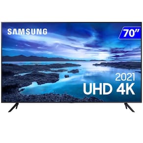Características: Marca: Samsung Modelo: UN70AU7700GXZD Smart TV: Sim Tamanho da tela: 70 Resolução: 3840 x 2160 pixels 4K Tecnologia da tela: UHD Taxa de atualização: 60Hz Formato da tela: Plana Contraste: Mega Contraste HDR: Sim Sistema operacional: Tizen Processador: Crystal 4K Tipo de alto-falante: 2 Canais Potência de áudio total (RMS): 20W Sistema de som: Dolby Digital Plus Entrada HDMI: 3 Entrada USB: 1 AV/vídeo: Não Saída digital óptica: 1 LAN RJ45: Sim Entrada de RF: Sim Bluetooth: Versão 4.2 Wi-Fi: Sim Comando de voz: Sim Espelhamento do smartphone: Sim Espelhamento de áudio: Sim Controle remoto: Sim Consumo: 240W