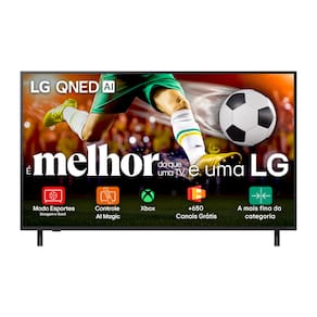 - Tela plana QNED de 75 Polegadas - Resolução 4K UHD (3.840 x 2.160) - Processador a7 AI Gen8 - Frequência de 60Hz - Sistema WebOS 25 - HDR10 com contraste dinâmico - Função SAP - Áudio 2.0 canais com 20W de potência - 3 entradas HDMI - 1 porta USB - Entrada RF, Ethernet, saída óptica e AV - Wi-Fi 5 e Bluetooth 5.0 - Controle remoto Smart Magic incluso - Cor: Charcoal Black - Padrão de furação VESA 300x200 - Bivolt / Tomada 10A – 3 pinos - Dimensões com base (LxAxP): 1677x1032x359 mm - Dimensões sem base (LxAxP): 1677x966x52 mm - Dimensões da base/pé: 25x359mm - Peso com base: 32,4 kg - Peso sem base: 31,4 kg - Anatel: 09460-24-01925Infelizmente não temos estoque do produto que você está procurando no momento.