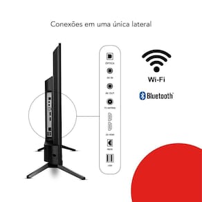 Conexões - 2 USB, 2 HDMI (1 ARC), 1 RF, 1 LAN, 1 AV, 1 Audio óptico e 1 Adaptador Audio In
