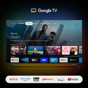 Com Bluetooth integrado, voce conecta fones de ouvido, soundbars ou caixas de som sem fio com praticidade, obtendo maior liberdade e um audio claro e imersivo. A TV tambem conta com Android TV, que oferece navegacao organizada, fluida e compatibilidade com os principais aplicativos do mercado. O Google Assistente permite comandos de voz que facilitam a busca por conteudos, a abertura de aplicativos e o ajuste de configuracoes, deixando sua interacao ainda mais simples.