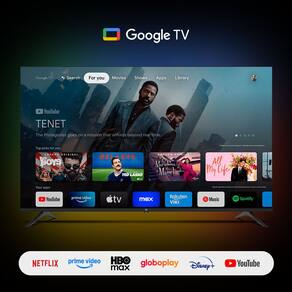 Com Bluetooth integrado, voce conecta fones de ouvido, soundbars ou caixas de som sem fio com praticidade, obtendo maior liberdade e um audio claro e imersivo. A TV tambem conta com Android TV, que oferece navegacao organizada, fluida e compatibilidade com os principais aplicativos do mercado. O Google Assistente permite comandos de voz que facilitam a busca por conteudos, a abertura de aplicativos e o ajuste de configuracoes, deixando sua interacao ainda mais simples.