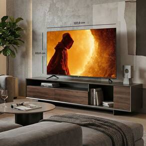A TV ja vem pronta para acessar os principais servicos de streaming, como Netflix, Globoplay, YouTube, Prime Video, Disney+, Star+ e muitos outros, reunidos em uma interface facil de usar. Seu design moderno, com bordas finas e acabamento elegante, complementa qualquer ambiente, unindo estetica e desempenho em um unico produto.