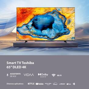 Smart TV DLED 65 4K Toshiba 65C350NS VIDAA com 4 HDMI e 2 USB. Sistema operacional VIDAA, Wi-Fi integrado, Bluetooth 5.0. Resolução 4K, taxa de atualização de 60 Hz. Brilho de 300 cd/m² e contraste de 1400:1. Suporte VESA 300x400. Consumo médio de 160W.Vendido e entregue por OBABOX