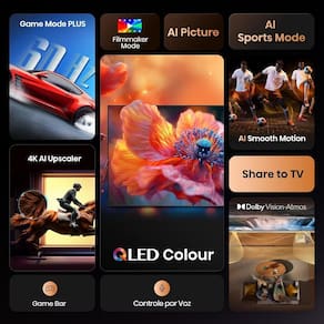 Tecnologia avançada Dolby Vision, HDR, HDR10, HDR10+, HLG, Filmmaker Mode, Dolby Gaming somado ao Dolby Atmos, desfrute de um áudio imersivo e imagem de alta qualidade, ideal para filmes, jogos e esportes.