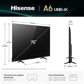 Upscaler 4K, Experiência imersiva de imagem e som, Tecnologia de áudio avançada, Imagem fluida e sem borrões, Game Mode Plus com barra de controle integrada, Sistema Operacional VIDAA U9, Wi-Fi, Bluetooth, Resolução 4K 3840 x 2160.Vendido e entregue por Eletrozema
