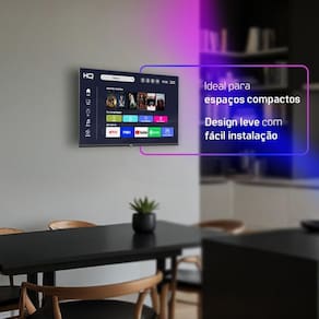 Além disso, a TV é leve, econômica (consumo de apenas 36W) e fácil de instalar, com suporte para montagem em parede (padrão VESA 10x10 cm).