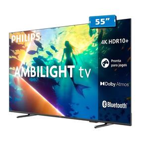 Smart TV 55” 4K Philips 55 PUG8100 com Ambilight, tecnologia 4K Ultra HD (3840 x 2160), tela LED plana de 55 polegadas com painel VA, frequência de 60 Hz, Sistema Operacional Titan OS, som estéreo de 20W, 3 entradas HDMI, 2 entradas USB, Wi-Fi integrado, Bluetooth, comando de voz, Ambilight 3 lados.Vendido e entregue por eFácil