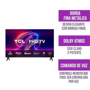 Smart tv 32 fhd tcl led android s5400a bivolt Experimente imagens vibrantes e desempenho ágil com a smart tv tcl de 32 fhd. Com tecnologia led e a plataforma android tv, você tem acesso a uma infinidade de aplicativos e conteúdos, além de um sistema de operação rápido e intuitivo. O design elegante com borda metálica e a qualidade de imagem full hd garantem uma experiência de visualização imersiva para suas séries, filmes e jogos favoritos. Além disso, com a versatilidade bivolt, ela se adapta facilmente a qualquer ambiente. Características - painel led - resolução full hd 1920 x 1080 - borda fina metálica para um design sofisticado - inteligência artificial + android tv com aplicativos essenciais pré-instalados - qualidade de som dolby atmos para áudio claro e potente - controle remoto com comando de voz para mais praticidade Especificações técnicas - marca: tcl - modelo: 32s5400af - cor: preto - tela: 32 polegadas plana - frequência: 60hz - voltagem: bivolt - potência: 50w - dimensões com pedestal : 71,6 x 46,8 x 18,2 cm - dimensões sem pedestal : 71,6 x 42,1 x 8,0 cm - peso do produto: 3.44 kg - peso com embalagem: 4.9 kg - compatível com suporte de parede padrão vesa: 100x100mm - conexões: wi-fi dual band, bluetooth 5.0, 1 porta lan, 1 entrada av, 1 entrada rf, 1 saída de áudio digital óptica , 1 entrada usb, 2 entradas hdmi Chromecast integrado - tecnologia hdr para contraste e brilho aprimorados - micro dimming: controle de iluminação em regiões da tela - : 12 meses Conteúdo da embalagem: - smart tv led 32 fhd tcl s5400af - controle remoto - 2 pilhas aaa - cabo adaptador p2/rca - 2 bases pedestal - parafusos para fixação das bases Equipe bonuti : informações sobre nossos produtos e trabalho - embalagem segura para evitar danos durante o transporte - produto testado de fábrica, com suporte em caso de defeitos - para verificar a previsão de entrega, adicione o produto ao carrinho e digite seu cep. Homologação Anatel: 112572013224 Marca: Não Informado Ean: 7899968301525