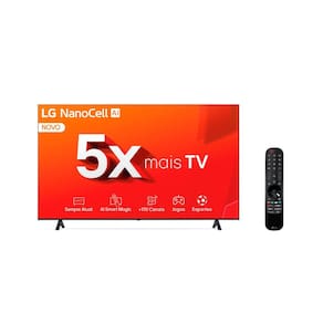 Com a Smart TV LG 50 Polegadas, webOS, 4K UHD, Nanocell - 50NANO80TSA, você assiste tudo com muito mais qualidade. Entre em um mundo de cores reais com a Tecnologia NanoCell, que torna as cores mais vivas. Veja suas séries e filmes com visuais e som dignos de cinema, com o FILMMAKER MODE e HDR10 Pro.