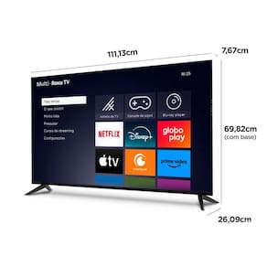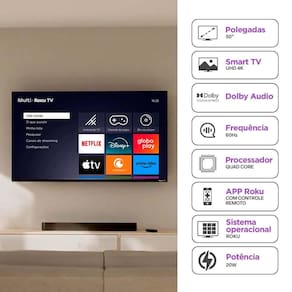 Smart TV com sistema operacional Roku TV, tela LED 4K UHD, Wi-Fi integrado, comando de voz, espelhamento de tela, Dolby Audio, compatível com Alexa e Google Home.Infelizmente não temos estoque do produto que você está procurando no momento.