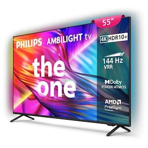 Smart TV Philips 55 Polegadas LED 4K UHD com Ambilight - PUG8929/78. Ambilight que aumenta a imersão com LEDs na traseira que reagem ao conteúdo. Processador P5 Perfect Picture Engine com compatibilidade com Dolby Vision, HDR10 e HLG. Som potente com Dolby Atmos (40 W RMS). Sistema operacional TITAN OS. Jogos com HDMI 2.1, VRR, FreeSync e ALLM, taxa de atualização de até 144 Hz. Casa conectada com compatibilidade com Matter e Control4. Controle por voz com Alexa integrada no controle remoto e compatível com Google Assistant. Design com moldura cinza antracite e suporte no mesmo tom. Ambilight trilateral com modos dedicados.Vendido e entregue por TAQI OFICIAL