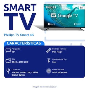 Smart Tv Philips LED 65 Polegadas 4K Wi-Fi Google TV Design Bordas Ultrafinas