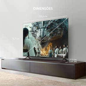 A tecnologia QLED e a resolução 4K proporcionam um brilho preciso e uniforme, cores vibrantes e detalhes nítidos que oferecem uma experiência visual de alta qualidade. Google TV com mais de 400.000 filmes e séries dos seus serviços de streaming favoritos. Crie um perfil para cada usuário na TV e mantenha as recomendações organizadas pelas preferências de cada um! Aproveite os serviços como Netflix, YouTube, Prime Vídeo e Disney+ pré-instalados. -assinaturas não incluídas- Uma combinação poderosa que proporciona um som envolvente, graças aos dois alto-falantes de 8W RMS -16W RMS no total-. E a profundidade das cores exibe as imagens como realmente são. Controle parental Integração entre a TV e smartphone por meio do espelhamento de tela Controle remoto com comando de voz e botões de atalho Ela fica bem em qualquer lugar e oferece ótima visualização da tela de qualquer ângulo.
