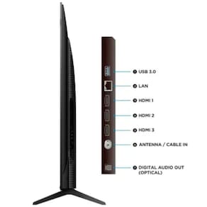 Em conectividade, a 85P7K oferece entrada LAN para acesso a internet, 3 entradas HDMI para consoles, notebooks e outros dispositivos, entrada USB para reproducao de midias, saida digital optica para sistemas de audio e Bluetooth 5.4 para conexao com dispositivos , como fones e soundbars.