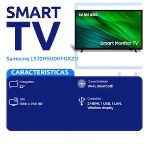Smart Monitor TV Samsung 32 HD Wi-Fi Tizen LS32H5000FGXZD