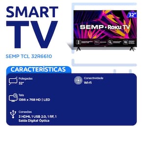 SMART TV SEMP LED 32 POLEGADAS WI-FI ROKU HD 32R6610