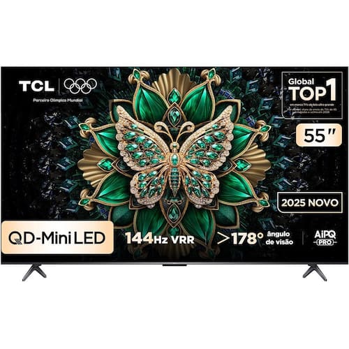 Tecnologia QLED com Mini LED, Processador AiPQ PRO com inteligência artificial, Sistema de som 2.1 canais Onkyo com subwoofer integrado, Dolby Atmos e DTS Virtual:X, Comandos de voz, Chromecast e AirPlay, Design ultrafino e elegante, HDMI 2.1, Baixo tempo de resposta de 15 ms em modo jogo, Wi-Fi Dual Band (2.4 GHz e 5 GHz), Bluetooth 5.4, Google Cast, TV Digital com Ginga, Perfil infantil, Sleep timer.Vendido e entregue por LOJAS COLOMBO